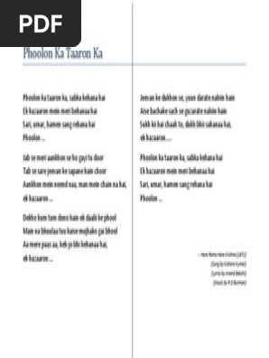 Phoolon Ka Taaron Ka Bollywood Cinema Of India - Enjoy the song of bollywood phoolon ka taron ka with hindi & english lyrics sung by lata mangeshkar from the movie hare.